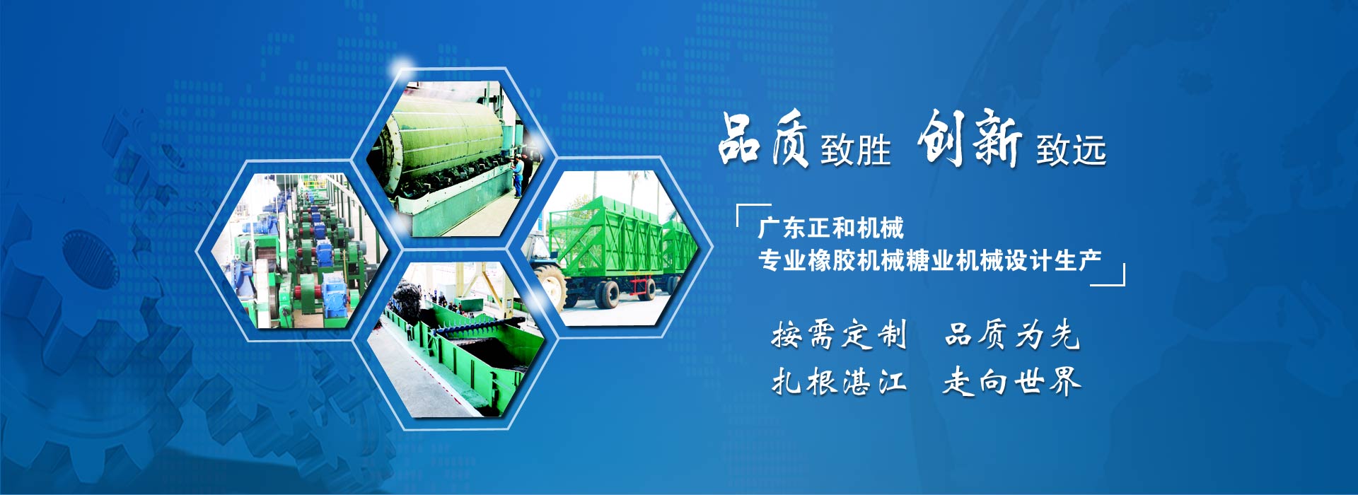 广东正和机械公司产品主要有绉片机,碎胶机,破胶机,打包机,甘蔗翻板机,压榨机,无滤布真空吸滤机广东正和机械有限公司总部设在中国广东湛江市。广东正和机械有限公司日常简称:广东正和、正和机械、广东正和机械、正和机械公司、正和机械厂。 正和机械依靠新技术新工艺新产品发展。设备的制造严格按相关制造标准执行。为提高产品的质量,主要的零部件电机、减速箱、电器、轴承、密封件等外购件采用进口件或国内优质品牌。公司加工设备有数···